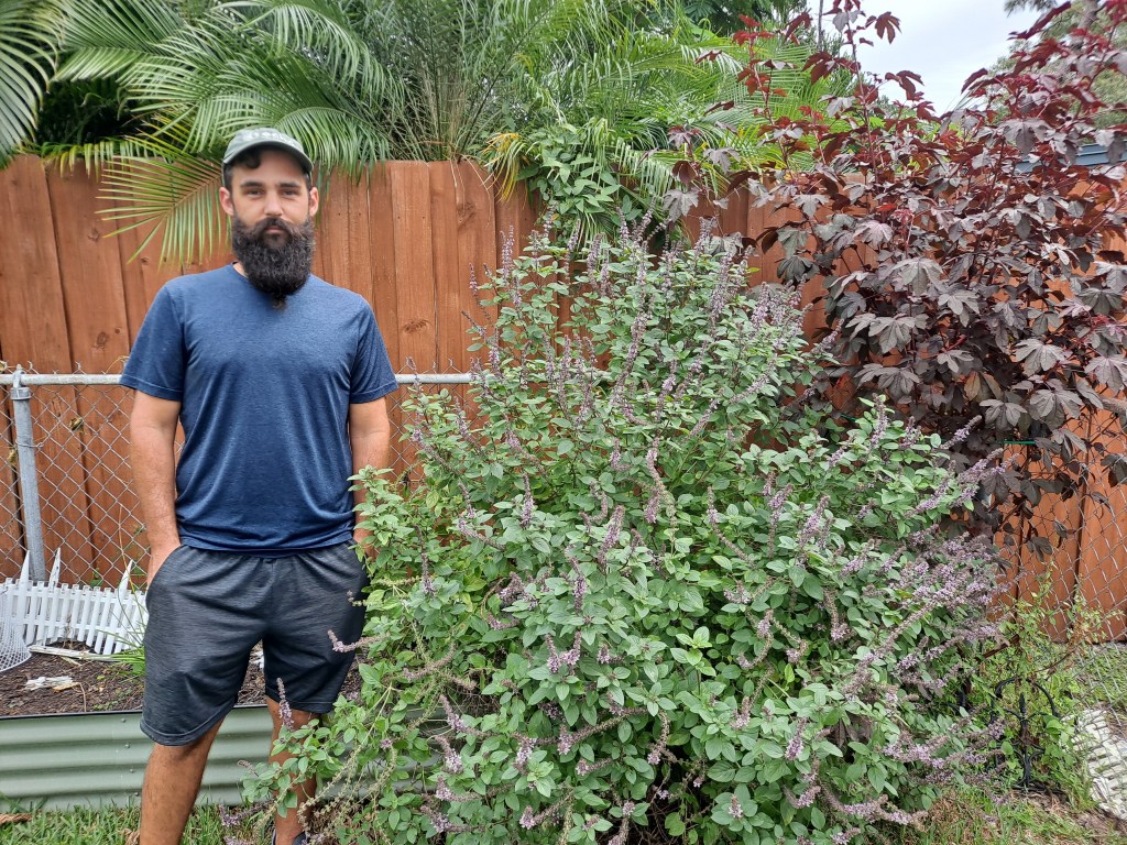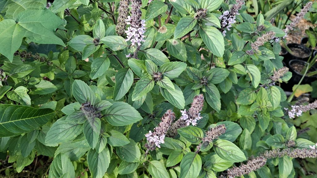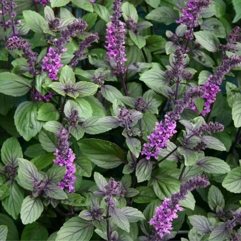 African Blue Basil is a flavorful herb highly regarded for its culinary applications. This basil variety is known for its unique purple stems and blue-tinged leaves, making it both visually appealing and delicious. With a compact growing habit and a height of about 1-2 feet, African Blue Basil is well-suited for food forests, offering a versatile and fragrant herb that can be used in a variety of dishes while also attracting pollinators and enhancing biodiversity. To cultivate it effectively, provide well-drained soil, full sunlight, and regular pruning to encourage bushy growth and ensure a steady supply of fresh basil leaves for culinary use.