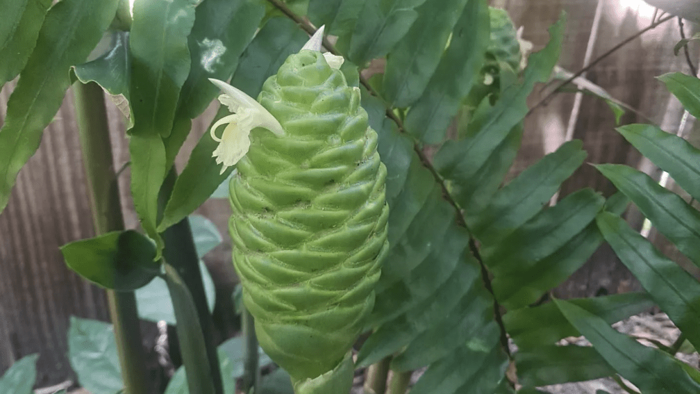 Shampoo ginger is a tropical plant that grows up to 4-6 feet tall, known for its fragrant, tuberous rhizomes used in traditional Hawaiian hair and skin care, as well as in culinary applications for its mild, ginger-like flavor. It thrives in warm, humid climates with partial to full shade and well-drained soil, making it an excellent addition to food forests for its versatility and ability to provide ground cover. Shampoo ginger is typically propagated by dividing its rhizomes, requires regular watering, and benefits from mulch to retain soil moisture, with its peak growing season in the warmer months.
