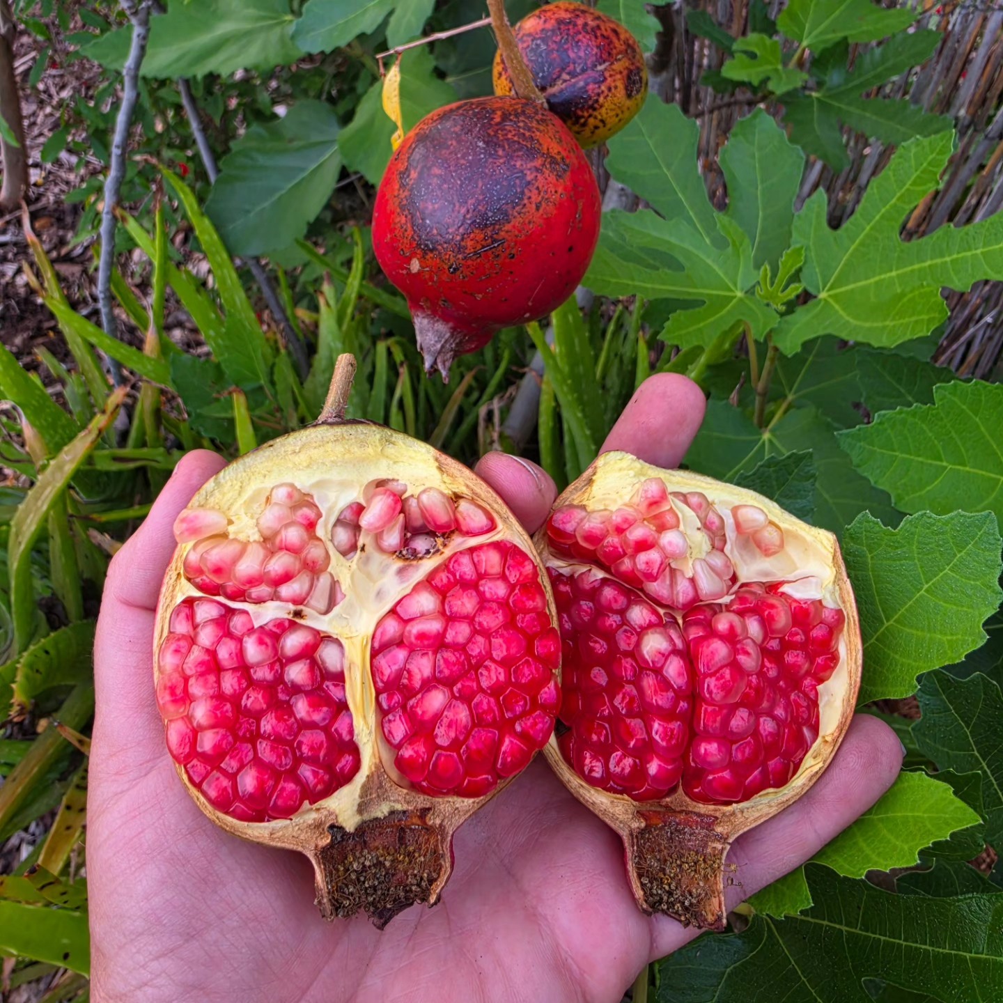 It was an enjoyable wander through the food forest with KC giving excellent info about each plant and tree! Samples of mulberries, loquat, pomegranate, edible leaves and flowers were tasty. She answered many questions about her food forest and my problem plant questions. Nursery plants are healthy and well established! Lunch at nearby Cuban restaurant recommended by KC completed a well spent morning!